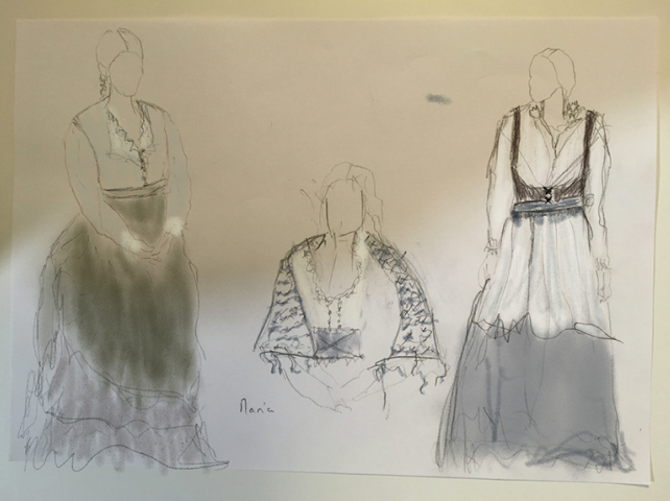 El maquillaje y atuendo de personajes y figurantes según el escenario ha sido otro de los motivos para que el público se sumerja en el siglo XIX: “La gente de campo tenía la piel más curtida, rojeces, un poco de suciedad en el cuello, uñas… Ya que la higiene en los caseríos no era como en la ciudad, donde tenían la piel más clara y limpia”, indica Eskisabel. Con los distintos peinados, Cruz se adaptó a la época y a los distintos escenarios: “En los caseríos, el ideal en los hombres era más volumen por encima de las orejas, las mujeres solían llevar looks más prácticos, trenzas, raya en medio o se separaba la mitad delantera de la mitad trasera, la mitad trasera se ponía muy tirante con un moño y en la parte delante se podían poner unas trenzas que tapaban las orejas y se anudaban en la parte de atrás. Este peinado era práctico incluso en las ciudades”.