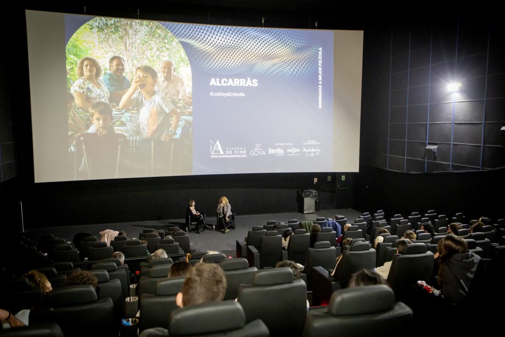 Continúan los encuentros entre los nominados y los espectadores, en las actividades de los Goya en Sevilla 2023 previas a la gala. Este martes fue el día de Alcarràs, historia que cuenta con 11 nominaciones, entre ellas las de Mejor Película y Mejor Dirección, y que presentó Anna Otín, nominada al Goya a Mejor Actriz Revelación. La docente catalana, que debuta en la interpretación con esta película respondió a las preguntas del público en un encuentro en los Cines Nervión, tras la proyección.