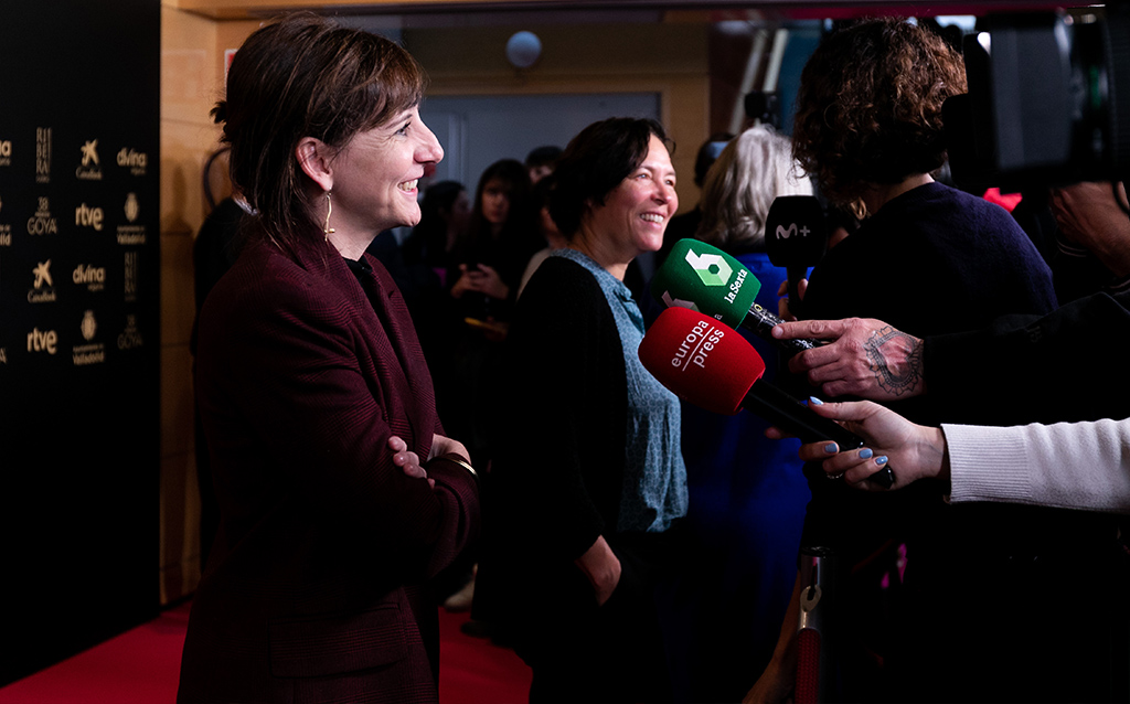 La joven realizadora vasca, autora de cortos como Adri, Polvo somos o el medio metraje Cuerdas, compareció por videoconferencia para expresar su sorpresa y emoción por las 15 nominaciones, que convierten a su película en la ópera prima con más candidaturas de la historia de los Goya, por encima de El orfanato. “Ha sido una sorpresa. Nunca lo hubiera pensado. Me iba cargando de emoción con cada nombre que decían”, afirmó una Estibaliz Urresola muy agradecida con los académicos. “Intento no escuchar ni leer los pronósticos. No hacemos películas para los premios, pero ya que estamos aquí no puedo dejar de estar ilusionada. Es un momento de alegría enorme que se haya reconocido a toda esa ‘colmena’ de compañeros”, apostilló. Recordó el gran trabajo documental de la película y sus reuniones con la asociación de padres y familiares trans, a los que mostró su agradecimiento por la ayuda prestada. “Todavía nos falta cuerpo para acercarnos a esta realidad. Hemos recibido muchos mensajes de personas trans que nos han dado las gracias por la película, porque les ha permitido sanar”, contó.